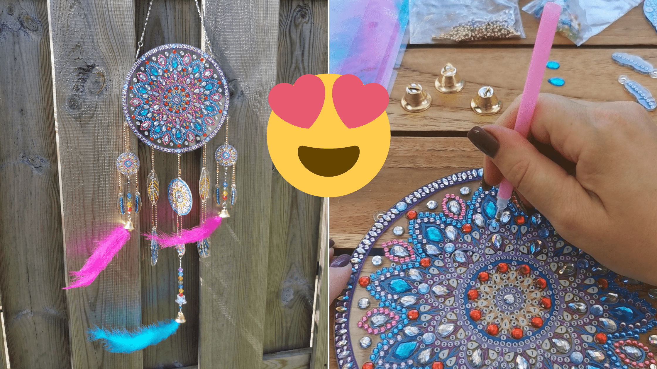 Heb je alle onderdelen bevestigd? Dan is het tijd om te genieten van de prachtige Diamond Painting dromenvanger die ook nog eens slechte dromen voor je filtert!