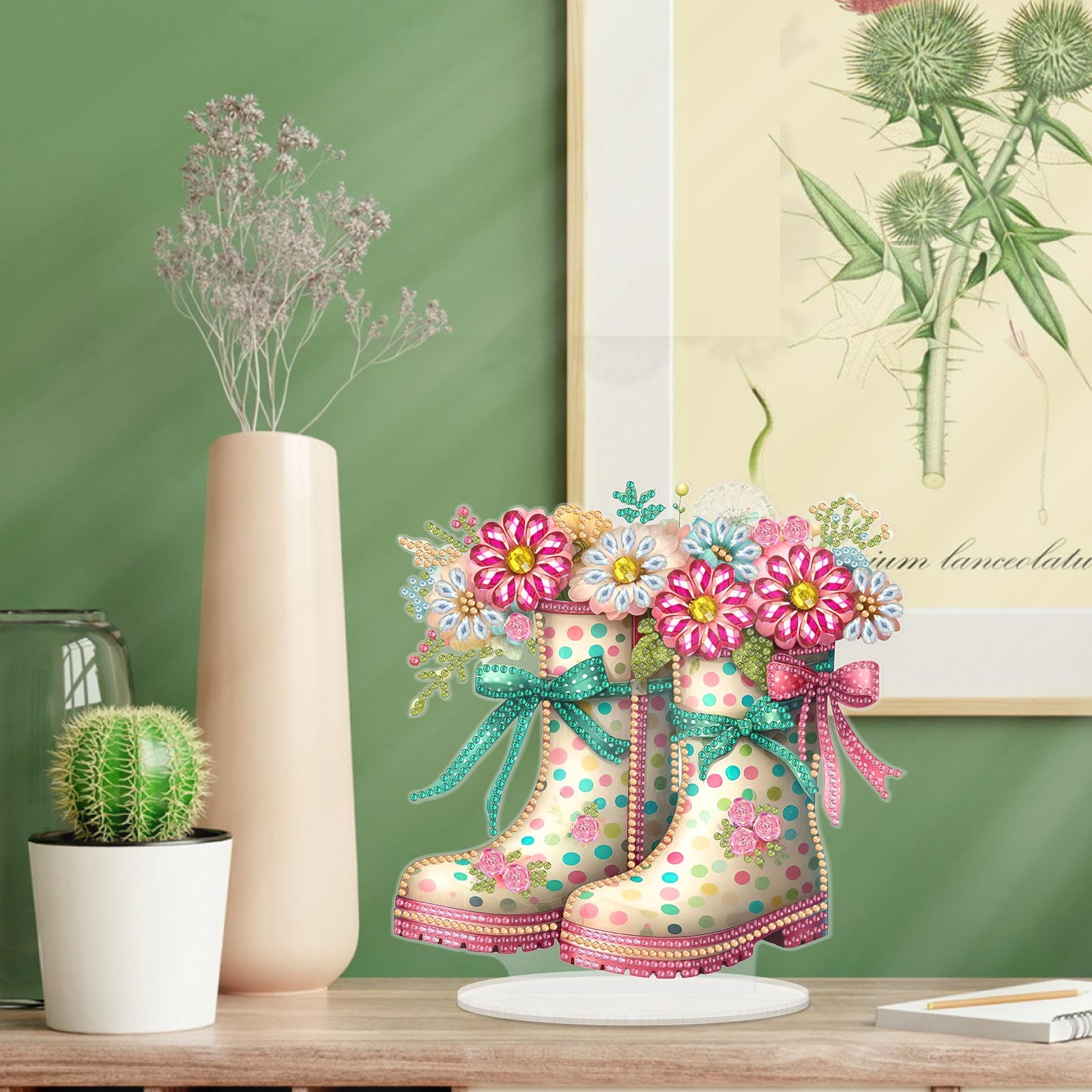 Deze Diamond Painting decoratie in de vorm van vrolijke regenlaarzen gevuld met bloemen brengt kleur en speelsheid in huis. De sprankelende steentjes en verfijnde details maken het een unieke toevoeging aan je favoriete kamer in huis. Geschikt voor zowel beginners als ervaren Diamond Painters.