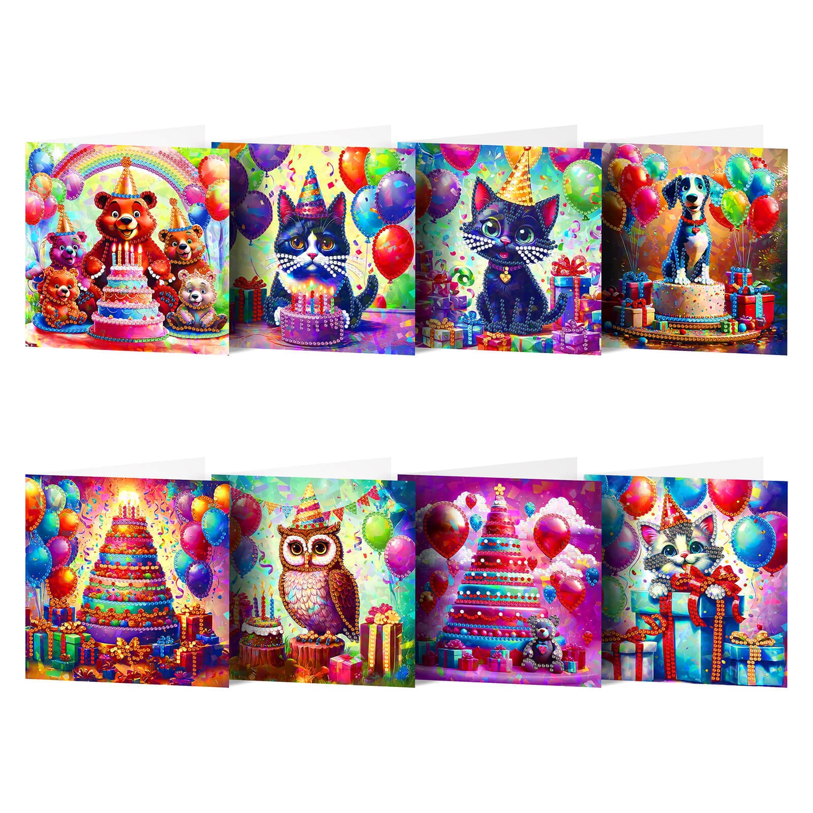 Diamond Painting Kaarten (8) – Verjaardagskaarten Dieren – Set 15