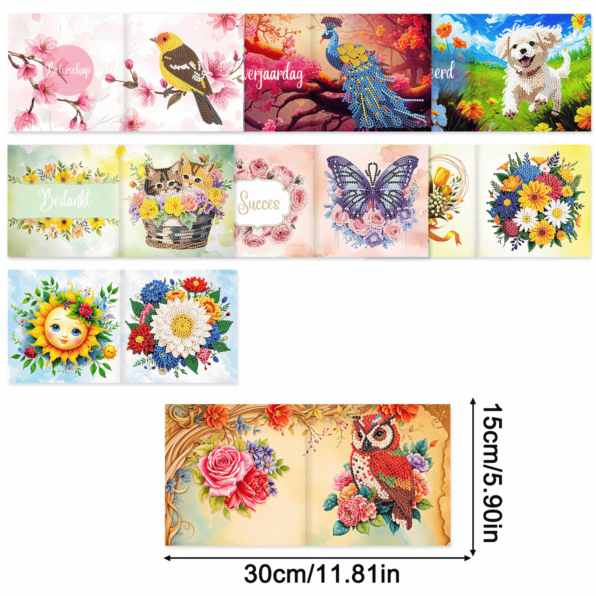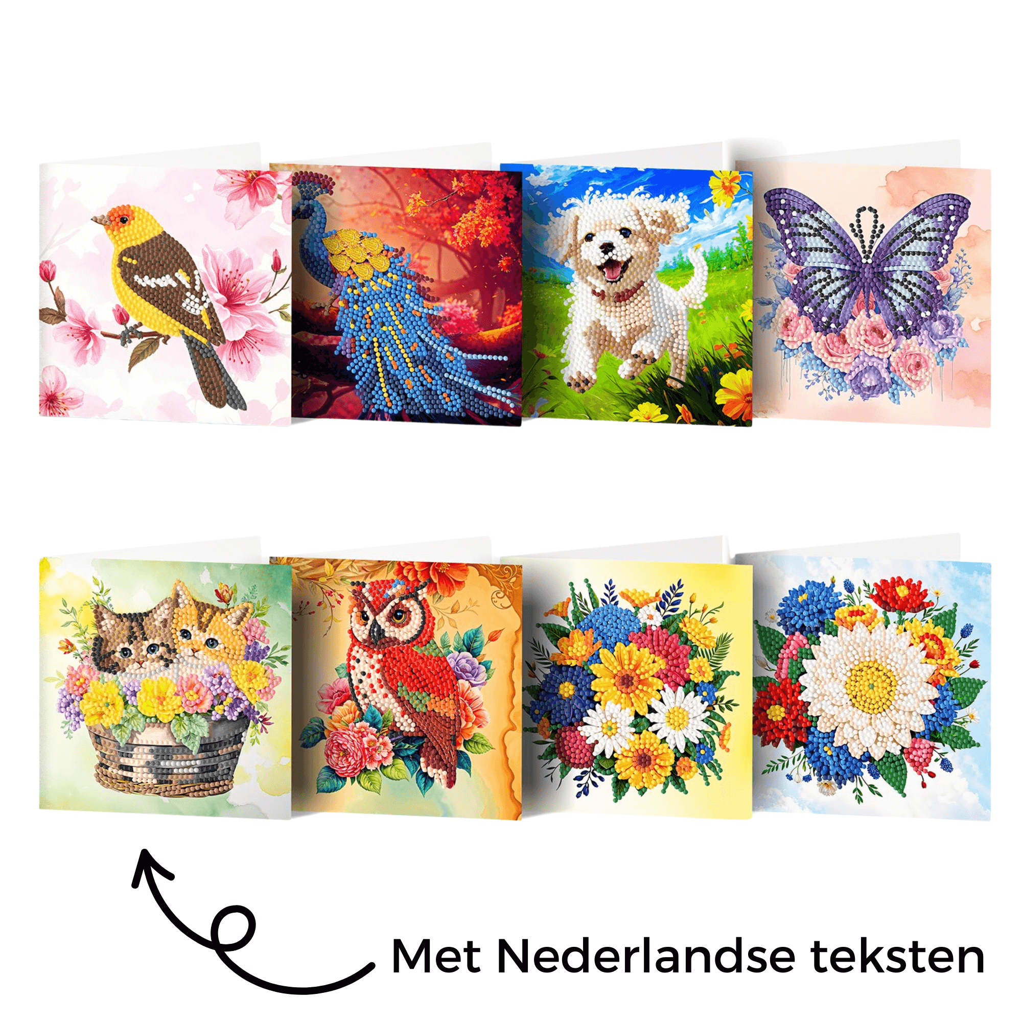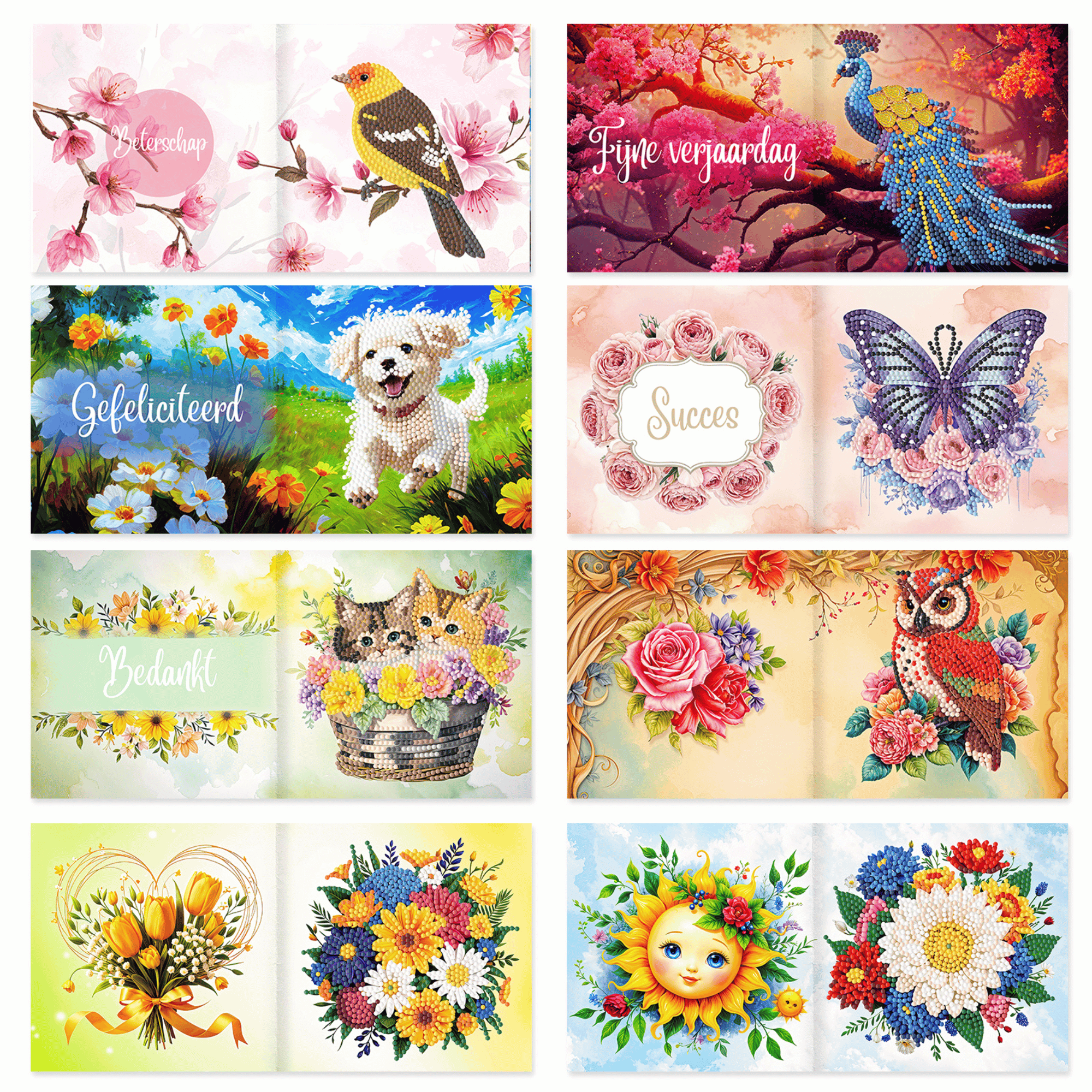 ✔ 8 luxe Diamond Painting kaarten (15x15 cm) met prachtige ontwerpen van bloemen en dieren.