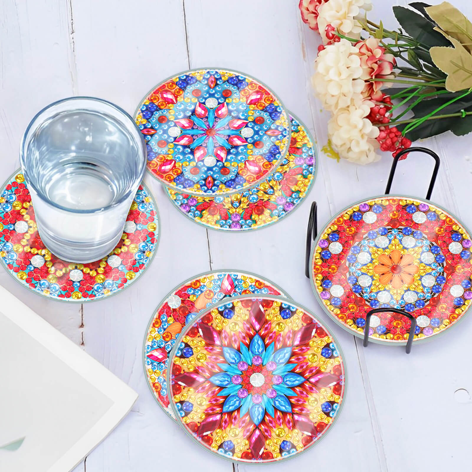 ✓ 6 Diamond Painting onderzetters (ca. 10 cm) met gedetailleerde mandala ontwerpen