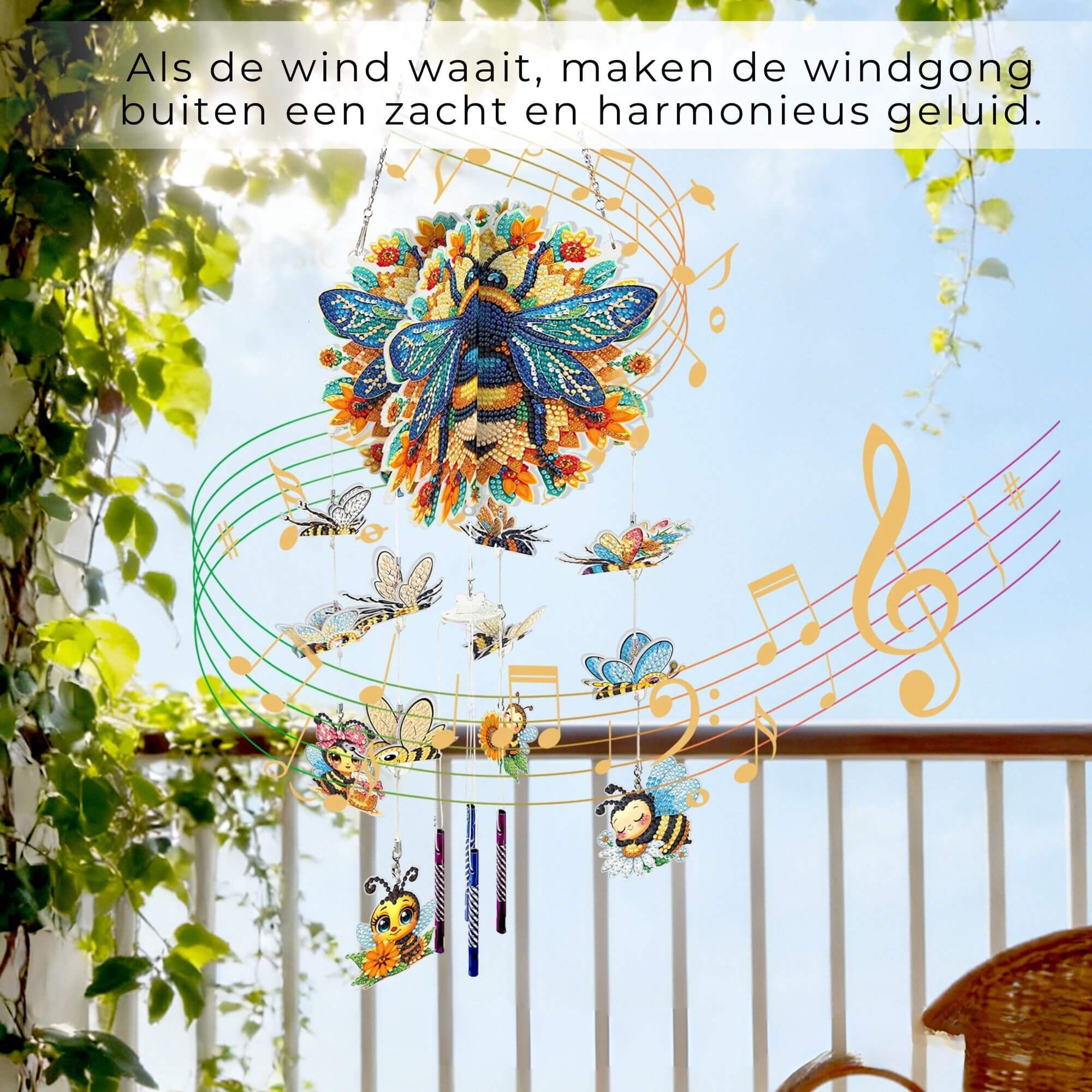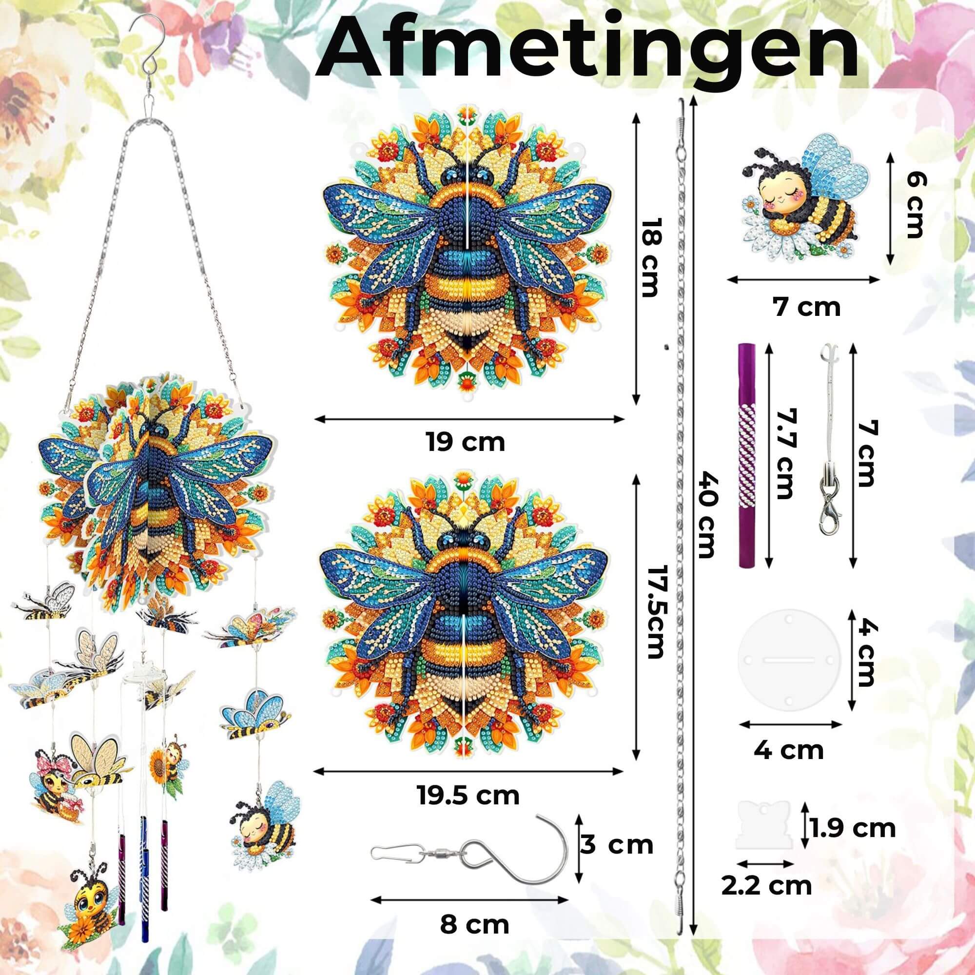 Wil je zelf een vrolijke windgong maken met bijen en bloemen? Bestel dan deze Diamond Painting Windgong 3D en maak een decoratie die blijft bewegen en opvallen.
